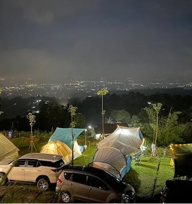 A spacious camping area with beautiful views. With a direct view of the land below, it makes visitors want to stay longer.